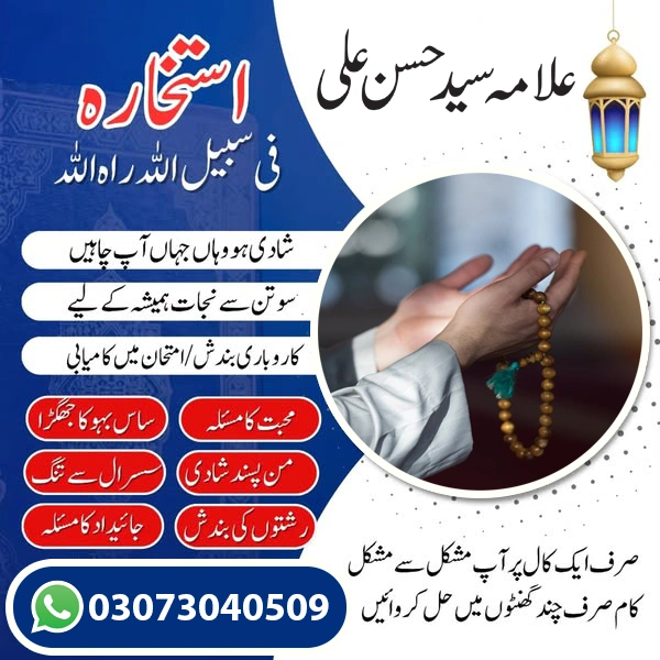 Get expert istikhara solution with 98.9% istikhara reading results in love marriage, family problems, manpasand shadi, rishton main rukawat as well as property problem solution.Β