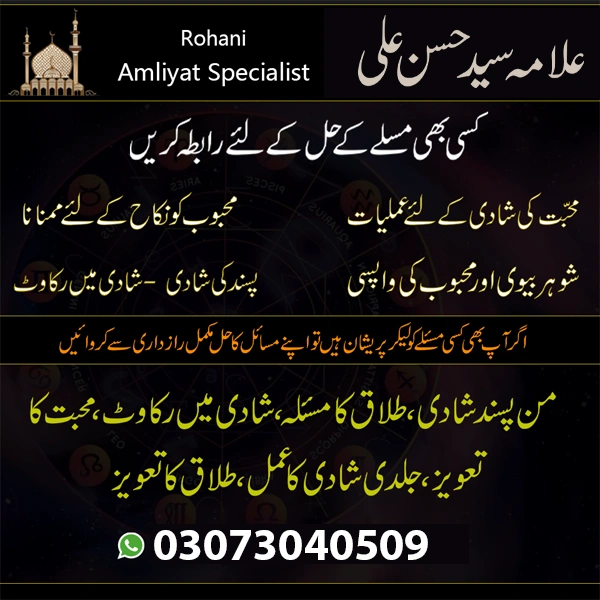 Get Amazing rohani ilaj for love marriage problem solution, rohani ilja for kids and family. Professor is providing online rohani ilaj via phone call and whatsapp.Β